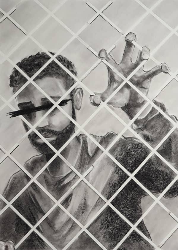 Original artwork by Jess Brown, charcoal drawing. Purchase this hi-res digital image for postcard printing.